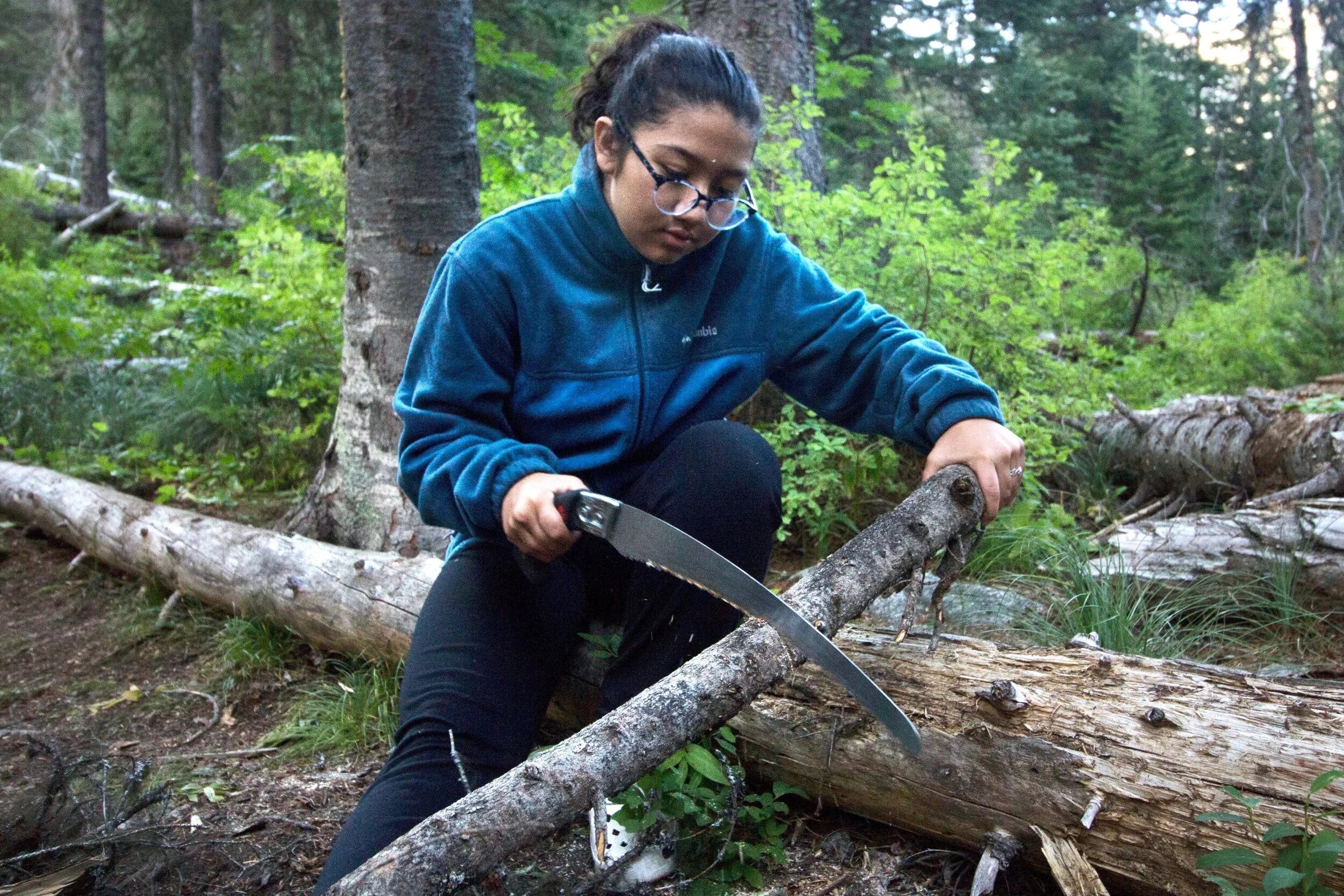 Ixza clearing a trail in Montana on a Community Service Learning trip.